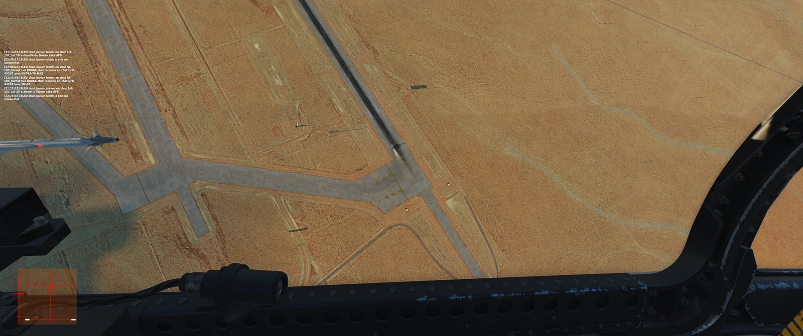 Une fois le FENCE-IN vérifié, vous êtes prêt à combattre. Le but est de ne pas louper d’occasion de tir, même avec le stress. Pour l’entraînement et un peu artificiellement, nous procédons ainsi: l’AWACS ordonne: “Passez FENCE-IN”, et l’avion réponds “FENCE-IN vérifié, prêt au combat” |
