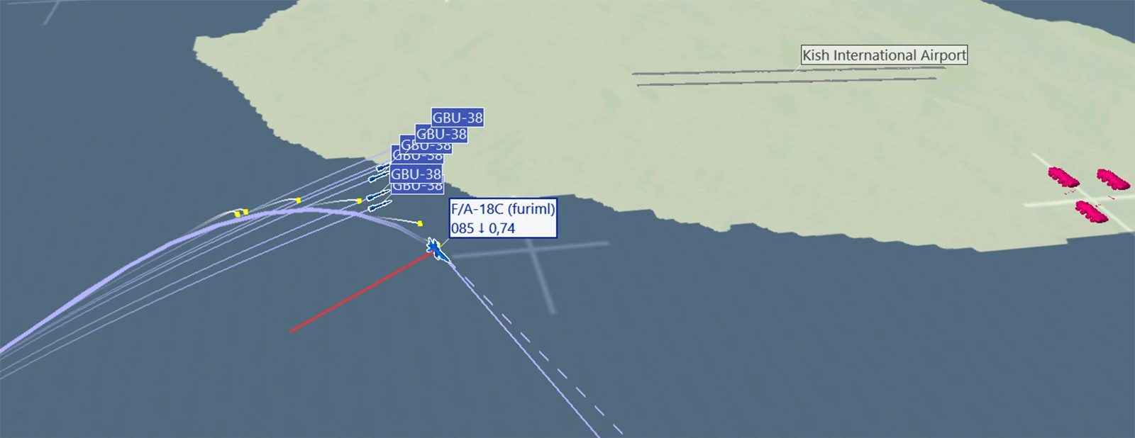 Largage JDAM en pallier haute altitude sur coordonnées PP. BDA au pod sur un waypoint. |